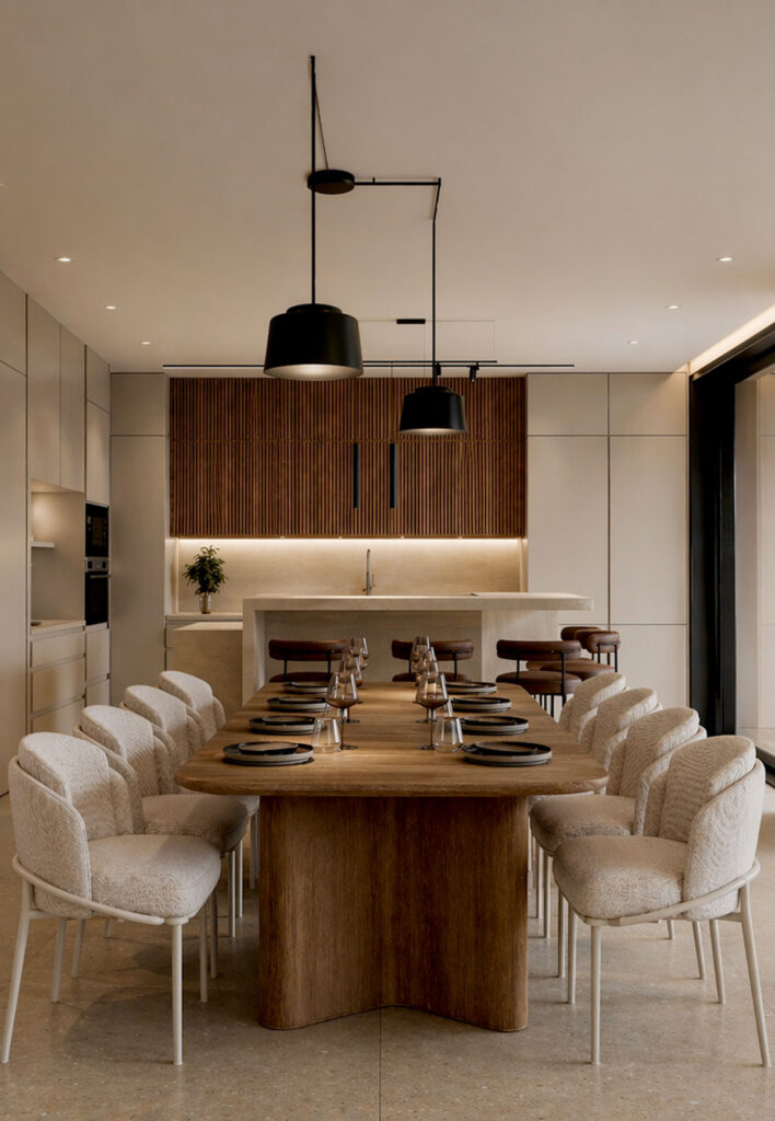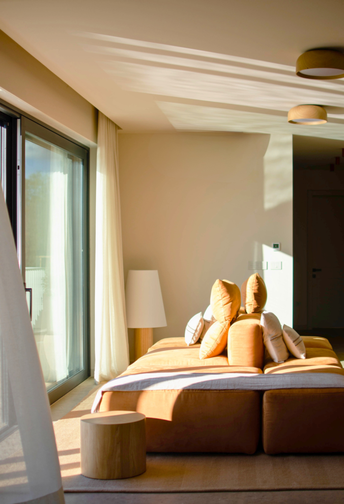 Dizajn interijera kuće za odmor Sella Marron u Istri temelji se na toplom, suvremenom mediteranskom stilu koji naglašava jednostavnost, prirodne materijale i ugodan osjećaj prostora. Interijer je oblikovan kroz nježne, zemljane tonove, puno prirodnog svjetla i lagane teksture koje stvaraju opuštenu atmosferu.