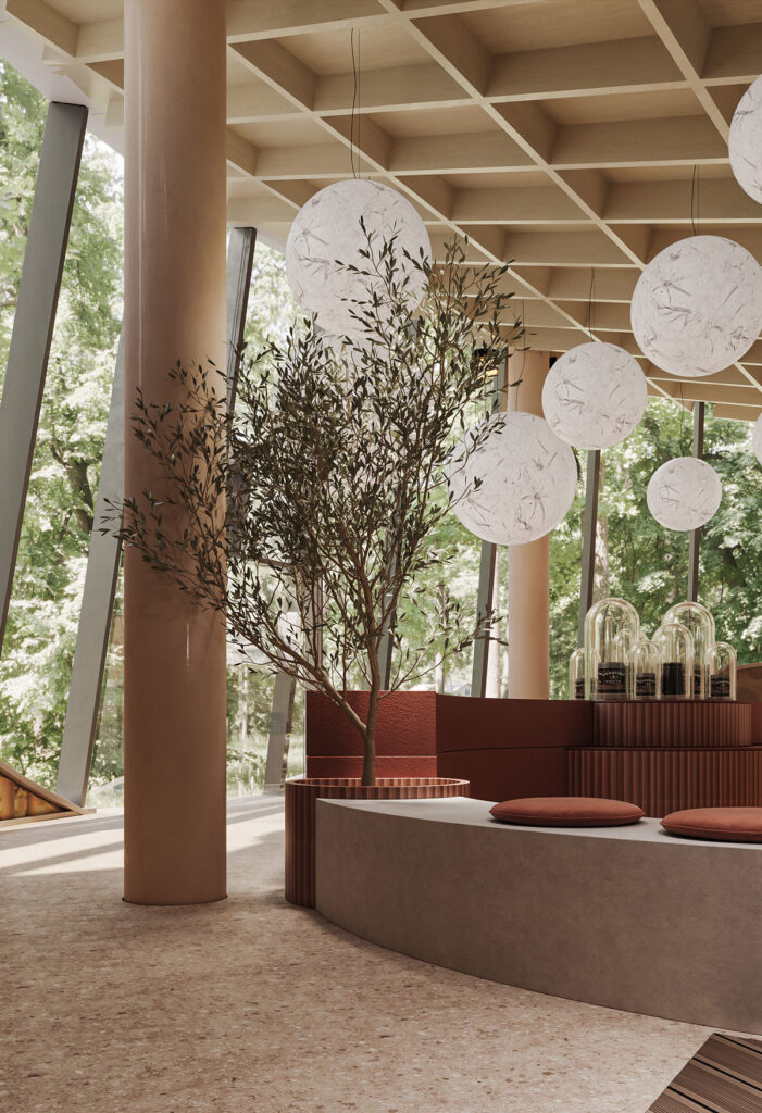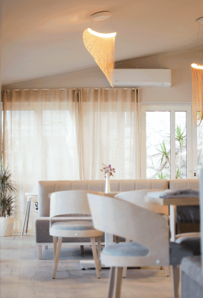 Dizajn interijera restorana More inspiriran je mediteranskim načinom života, svjetlom i prirodnim materijalima. Kroz pažljivo osmišljene detalje i neutralnu paletu boja, stvoren je ambijent koji naglašava doživljaj boravka na obali i povezanost s okruženjem.