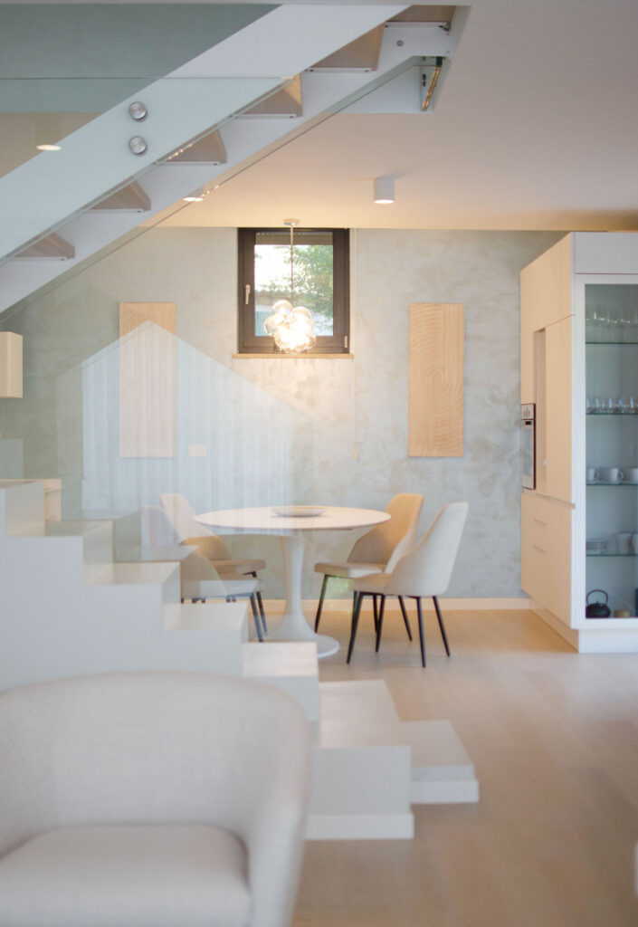 Dizajn interijera Casa Contessa u Livadama inspiriran je elegantnim rustikalnim stilom s naglaskom na romantiku i bezvremensku ljepotu istarskih interijera. Prostor je oblikovan kroz svijetlu paletu boja, prirodne materijale i mekane teksture koje stvaraju osjećaj topline i ugode.